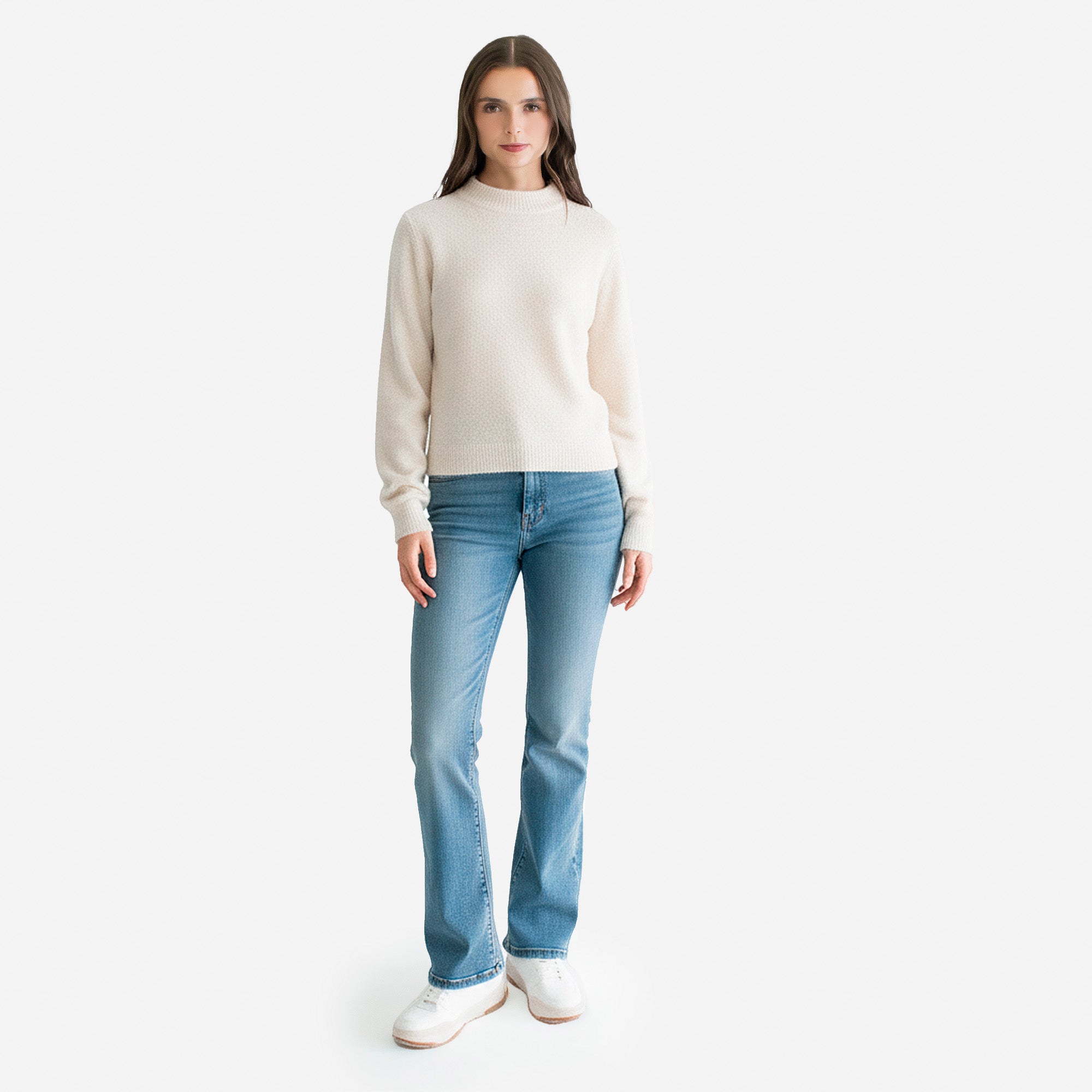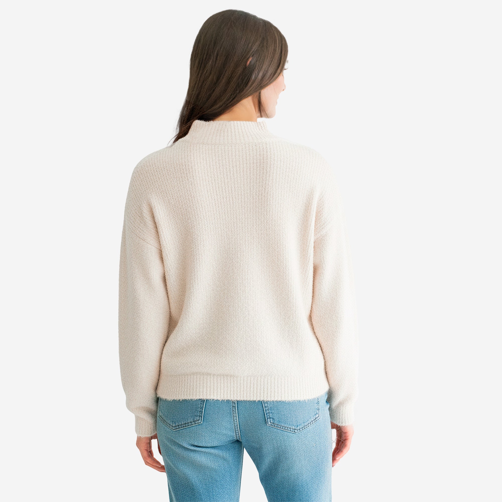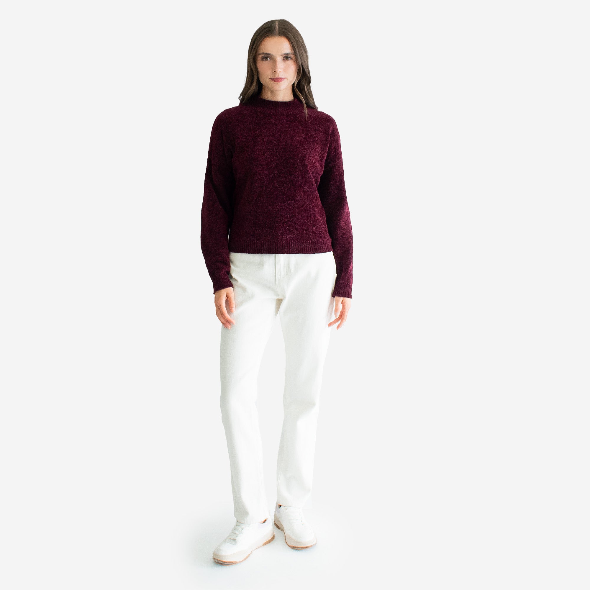 Suéter de manga larga en comfy fit, tejido en textura afelpada tipo chenille. Cuenta con cuello redondo que aporta un toque moderno y acogedor. Ideal para un look cómodo y elegante a la vez.