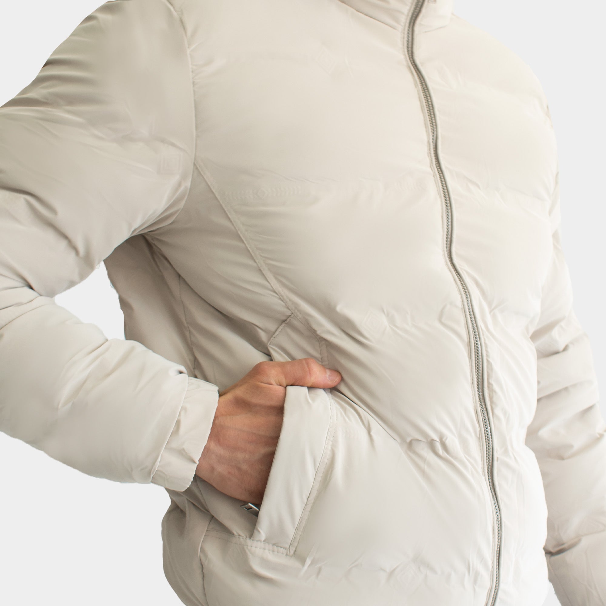 Acabado mate resistente al agua, bolsillos laterales con cierre y un cierre frontal al tono para un look moderno y limpio.