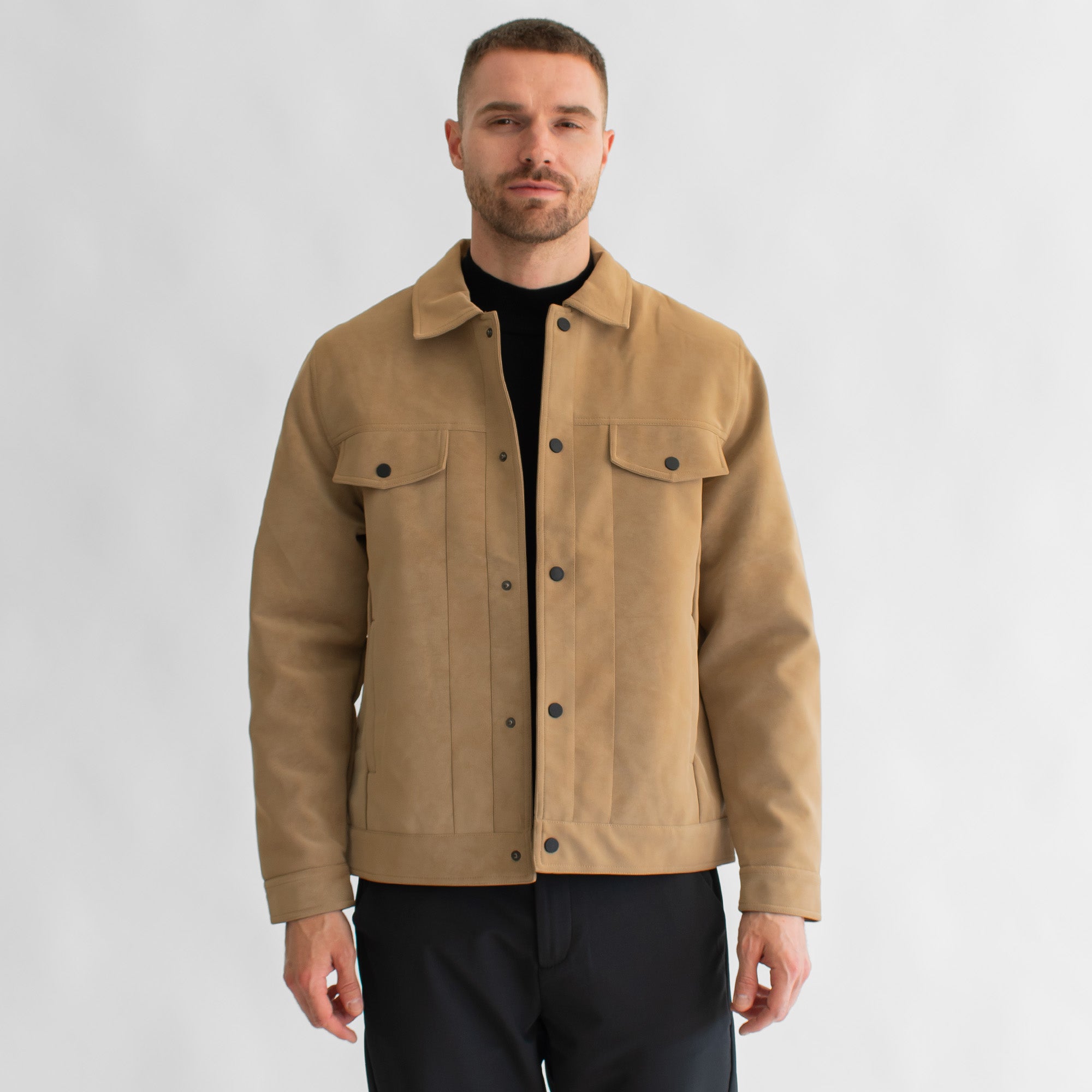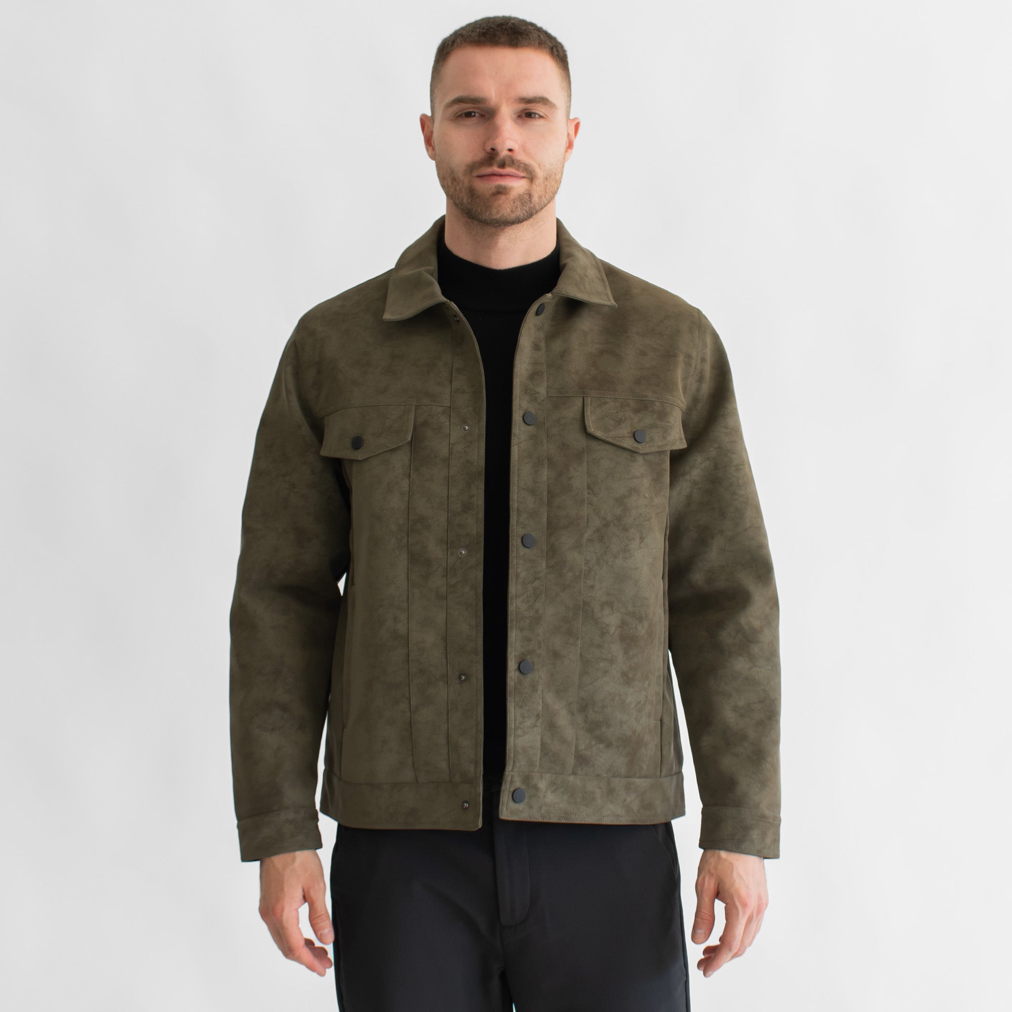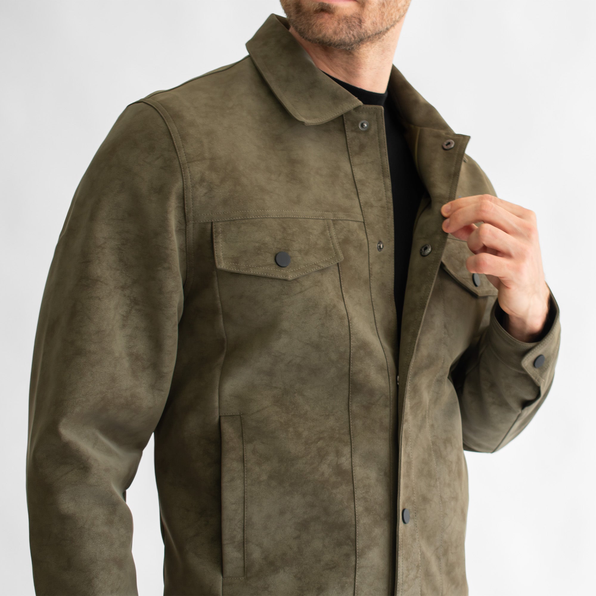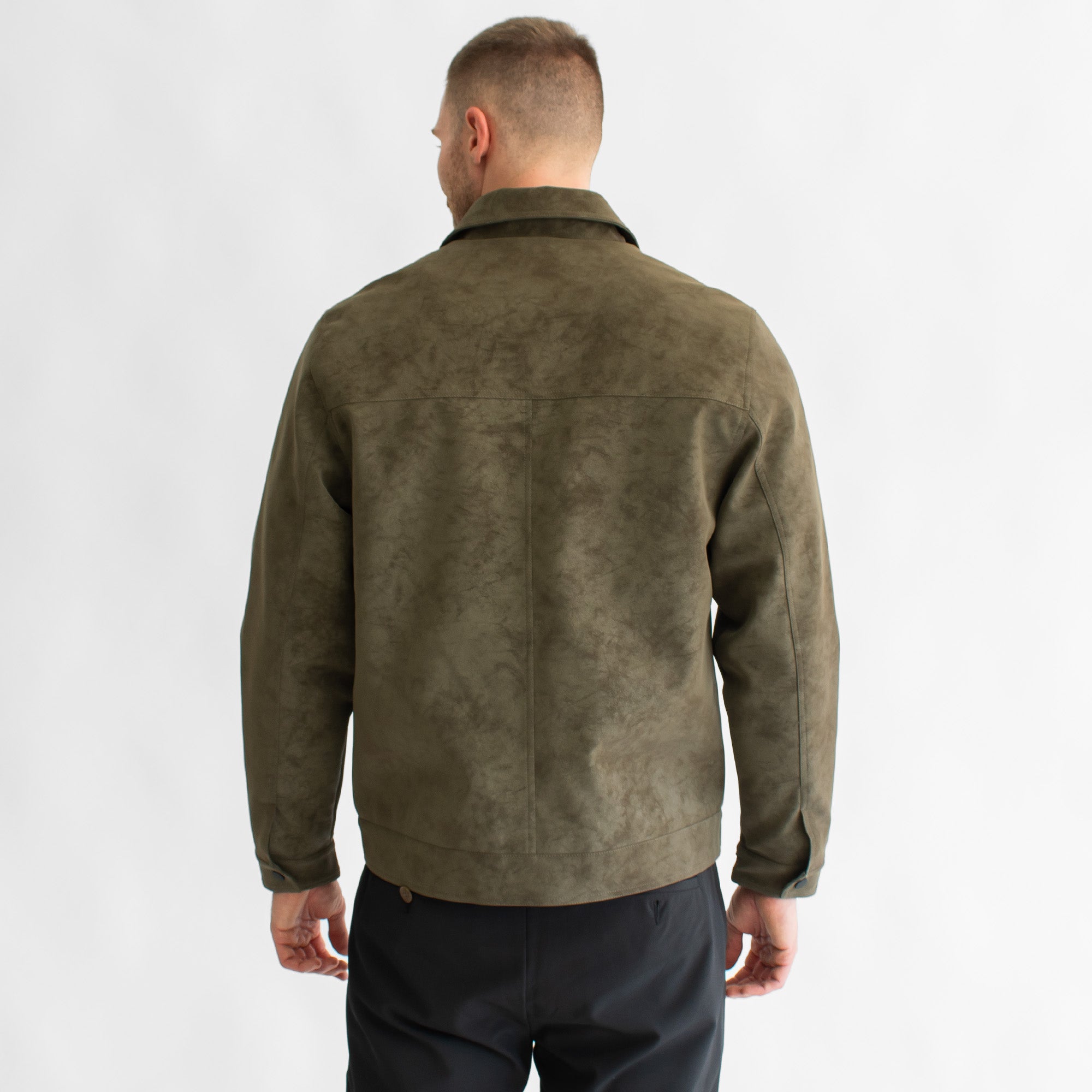 Chamarra corte Americana Regular Fit con textura tipo piel y acabado deslavado vintage.