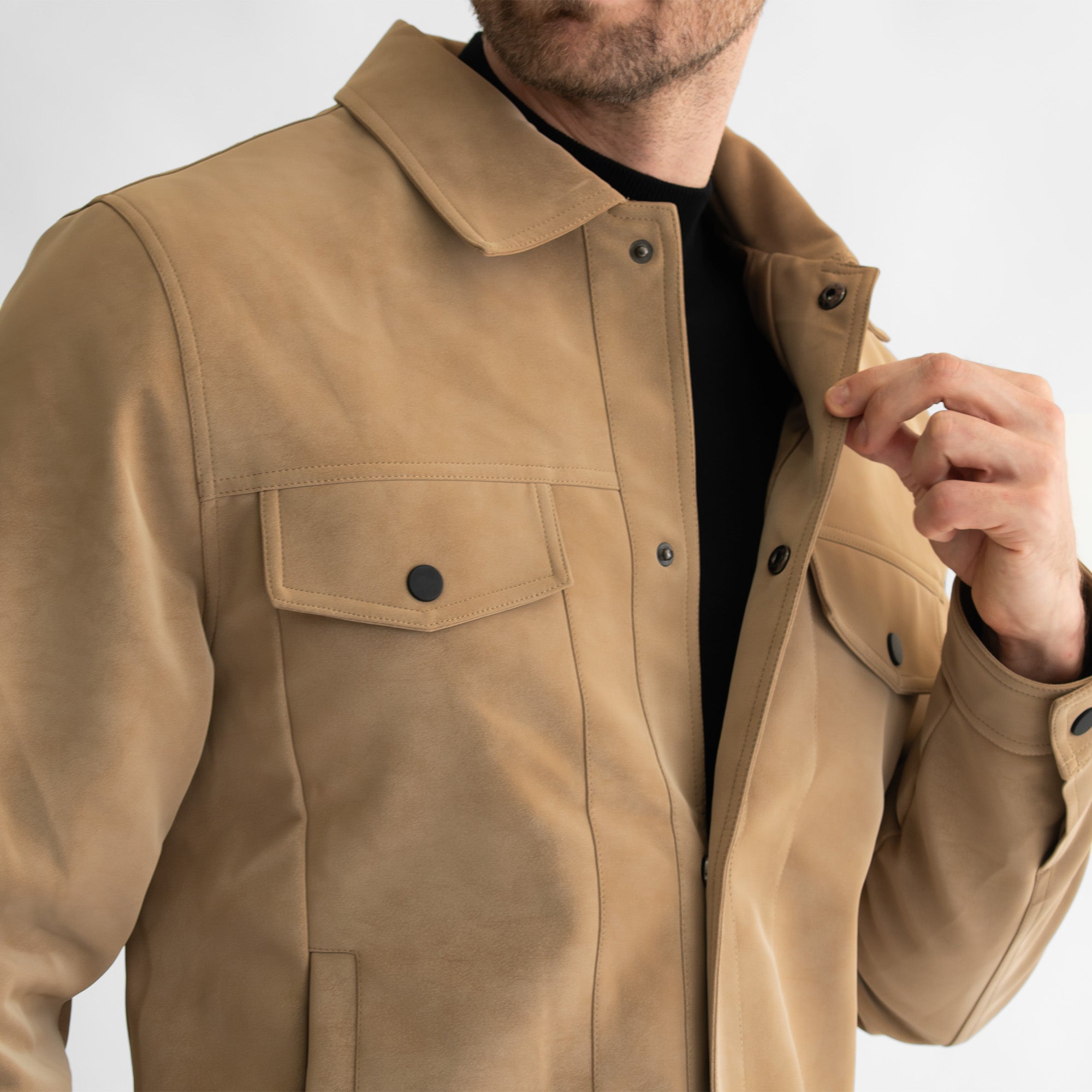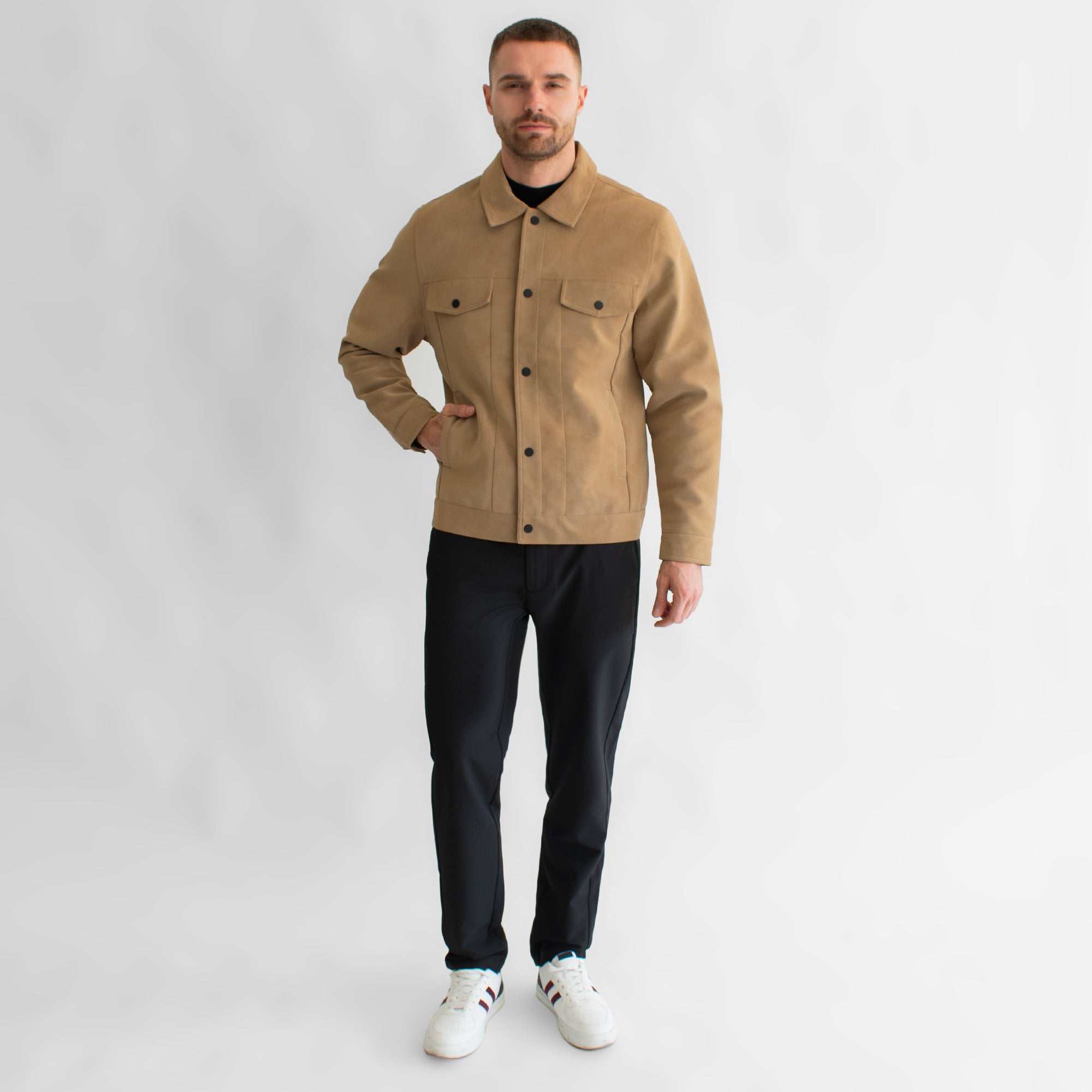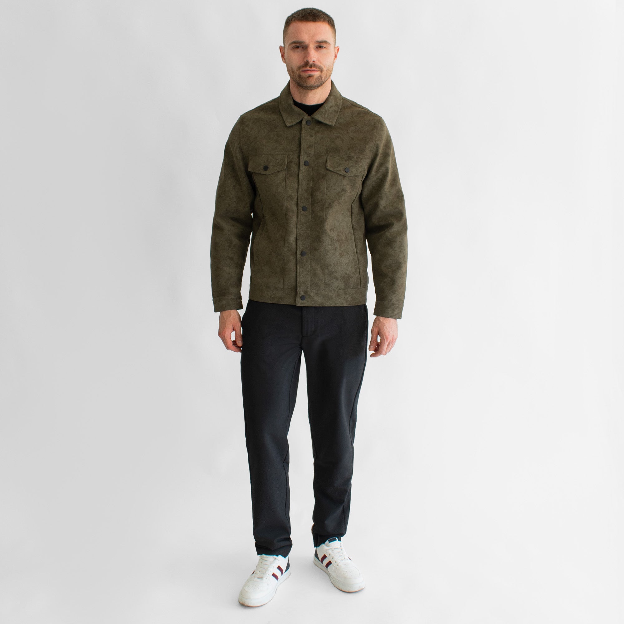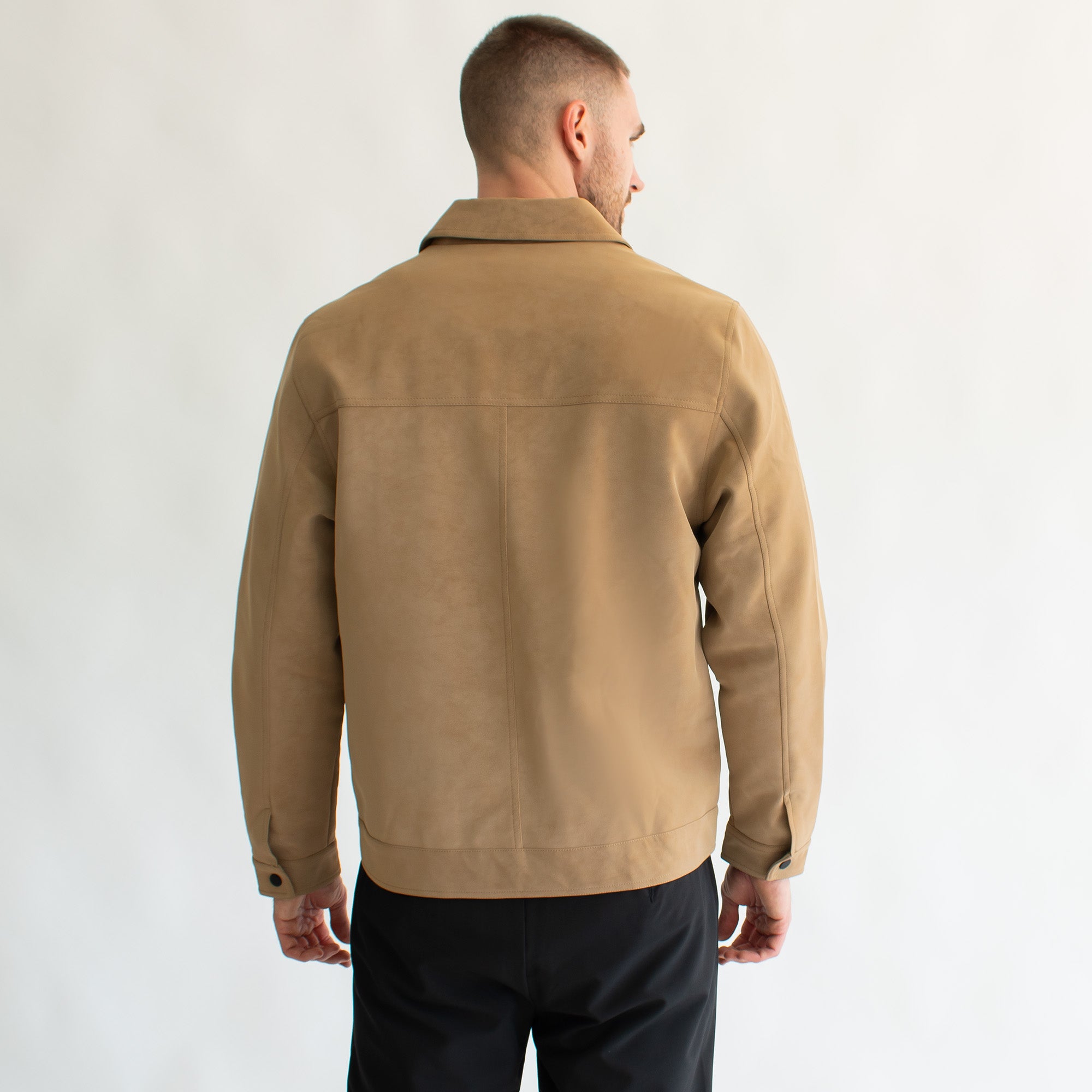 Chamarra corte Americana Regular Fit con textura tipo piel y acabado deslavado vintage.