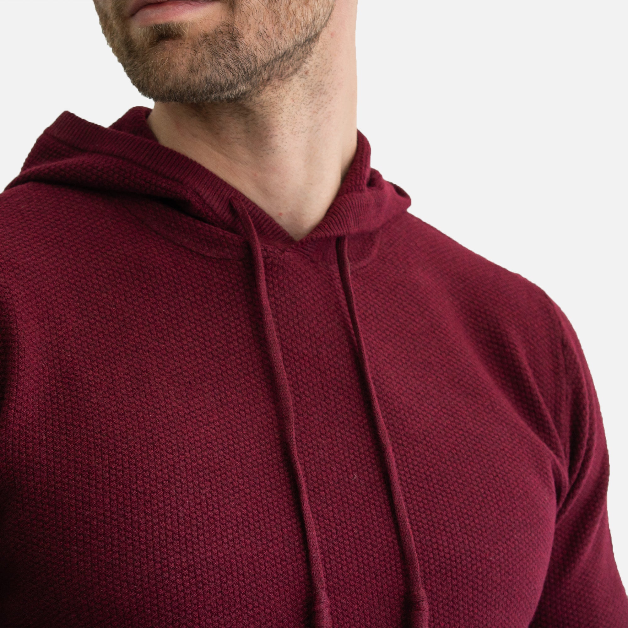 Suéter tipo hoodie de manga larga con corte regular fit y tejido texturizado a cuadros.