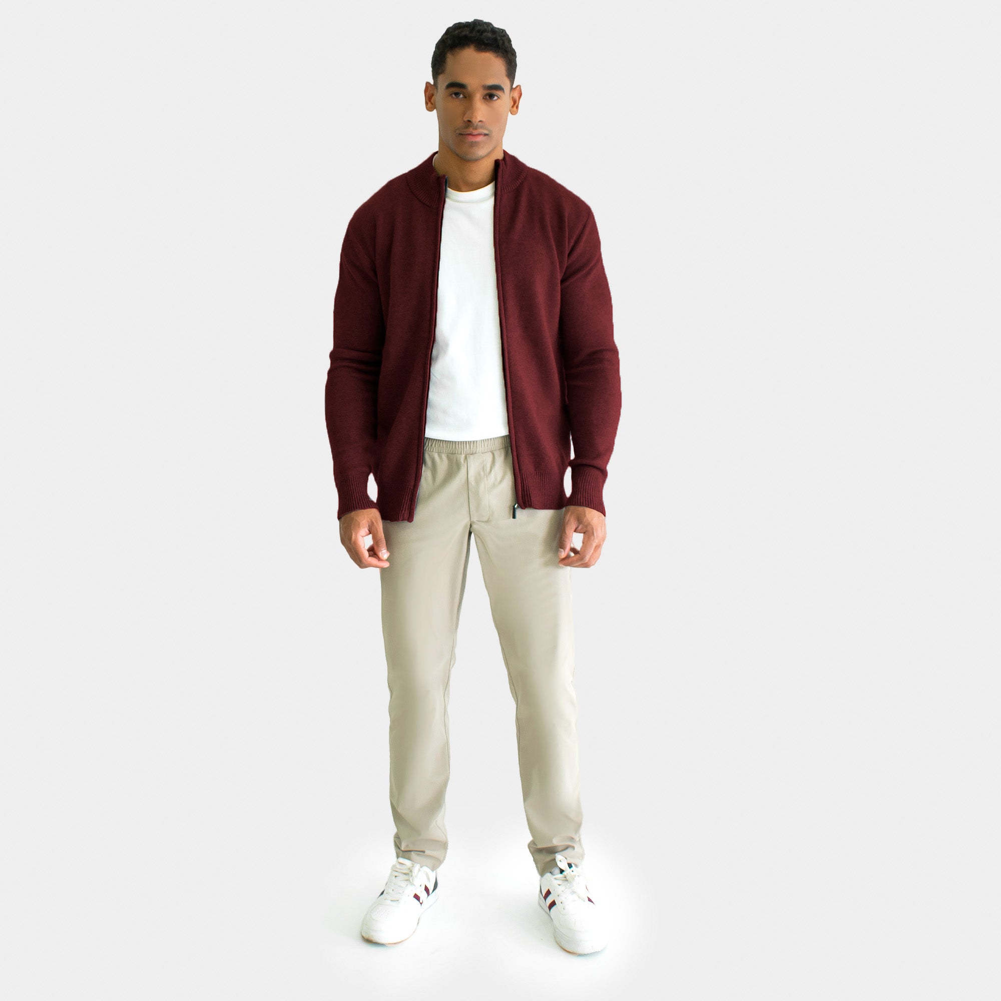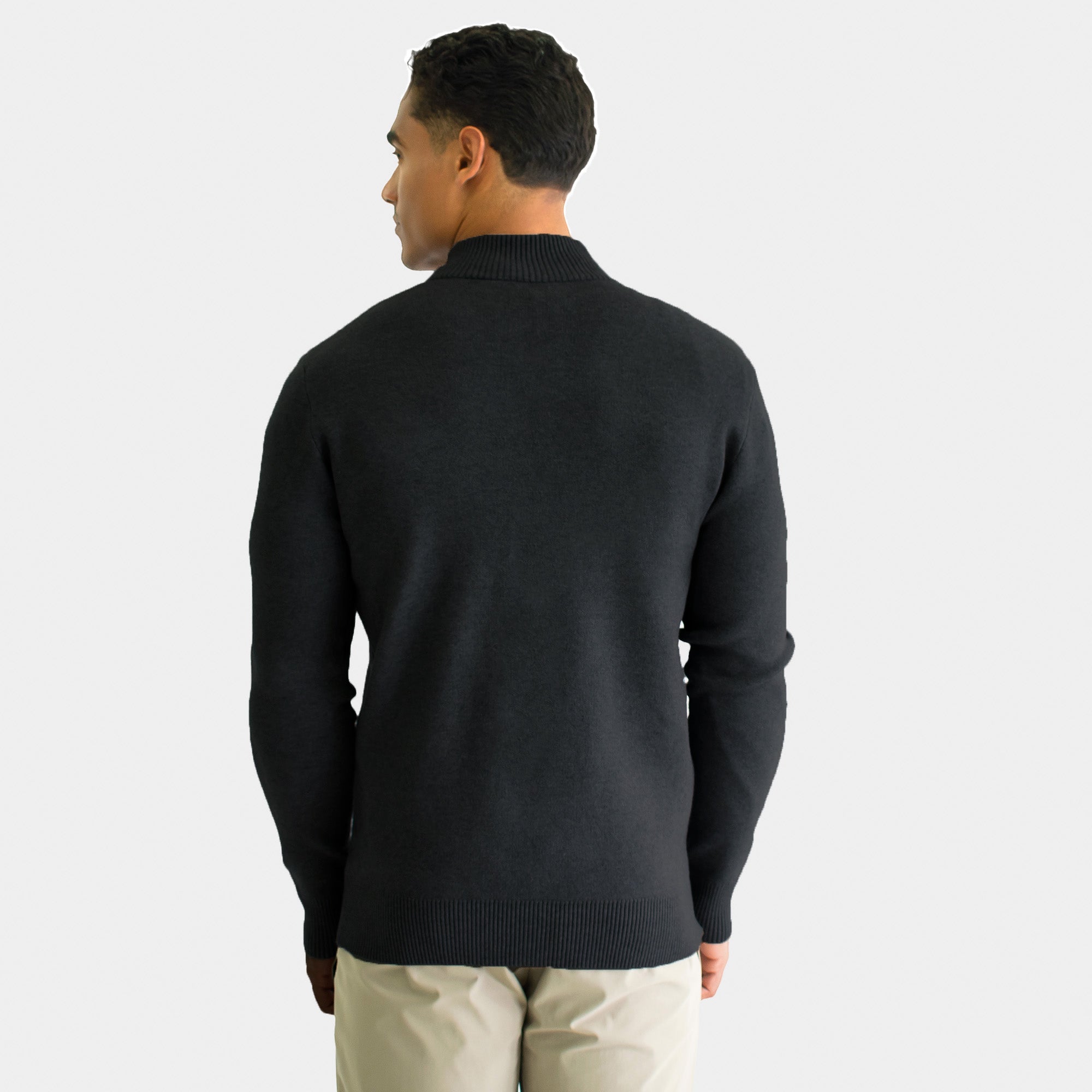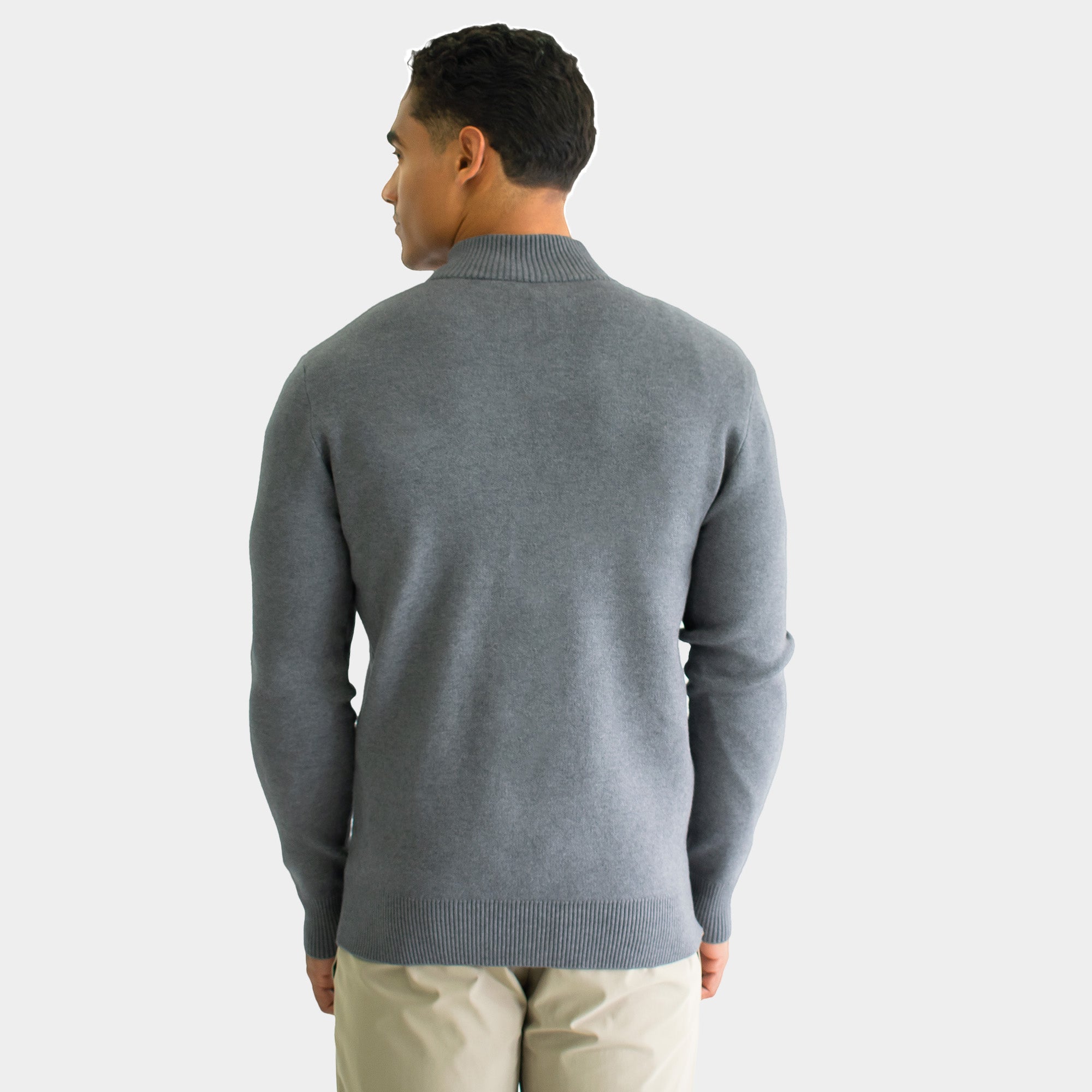 Suéter de manga larga con tejido grueso, cierre completo y cuello alto.