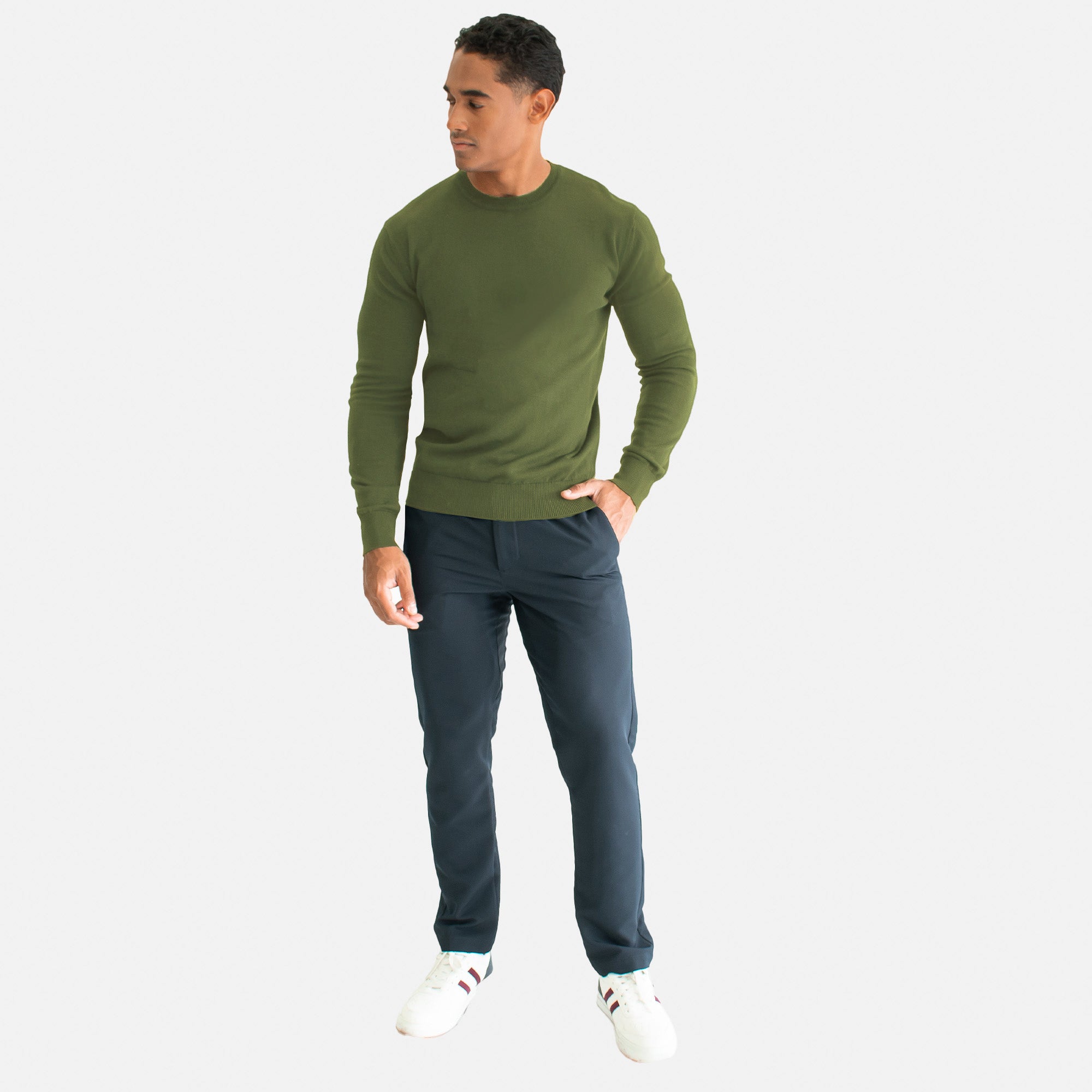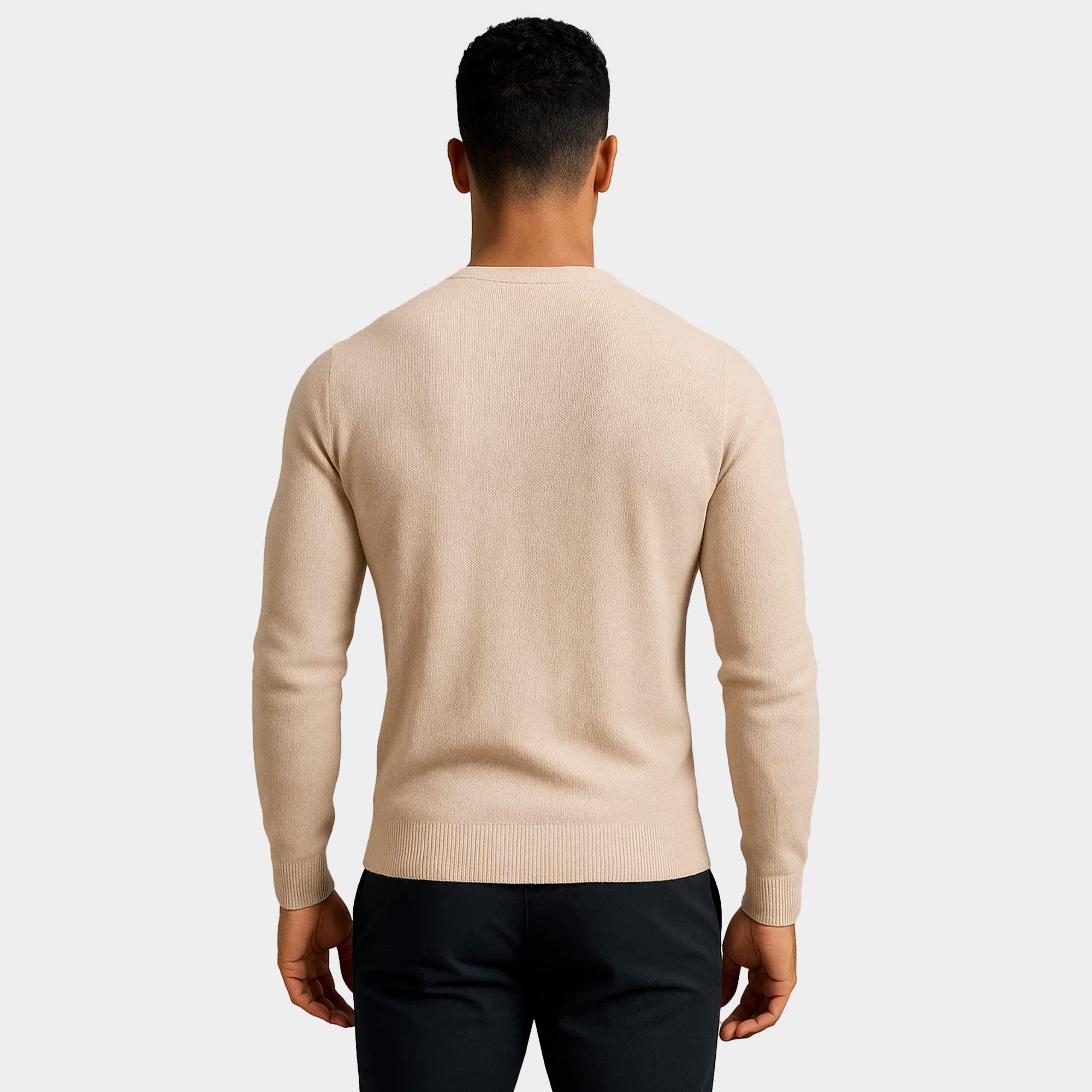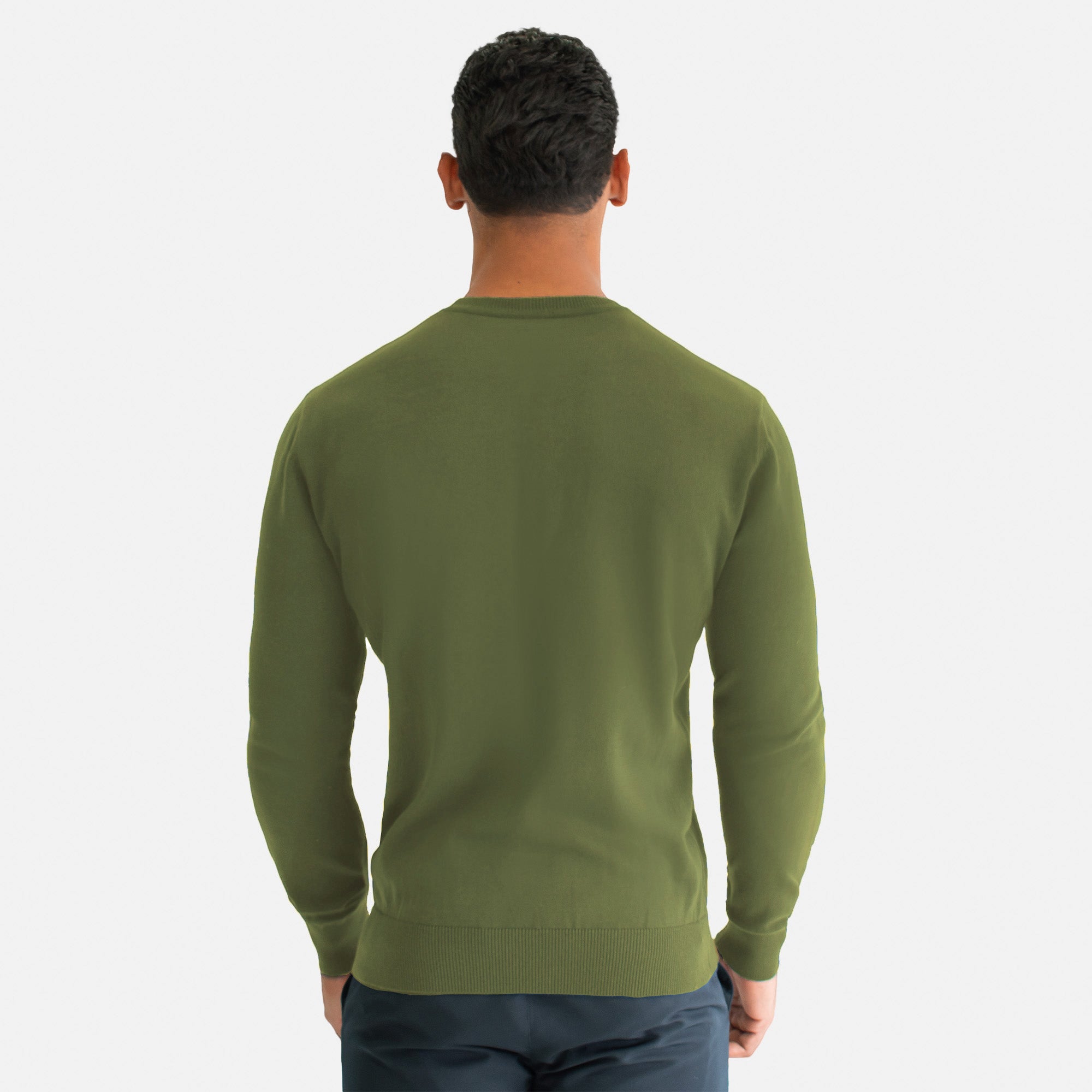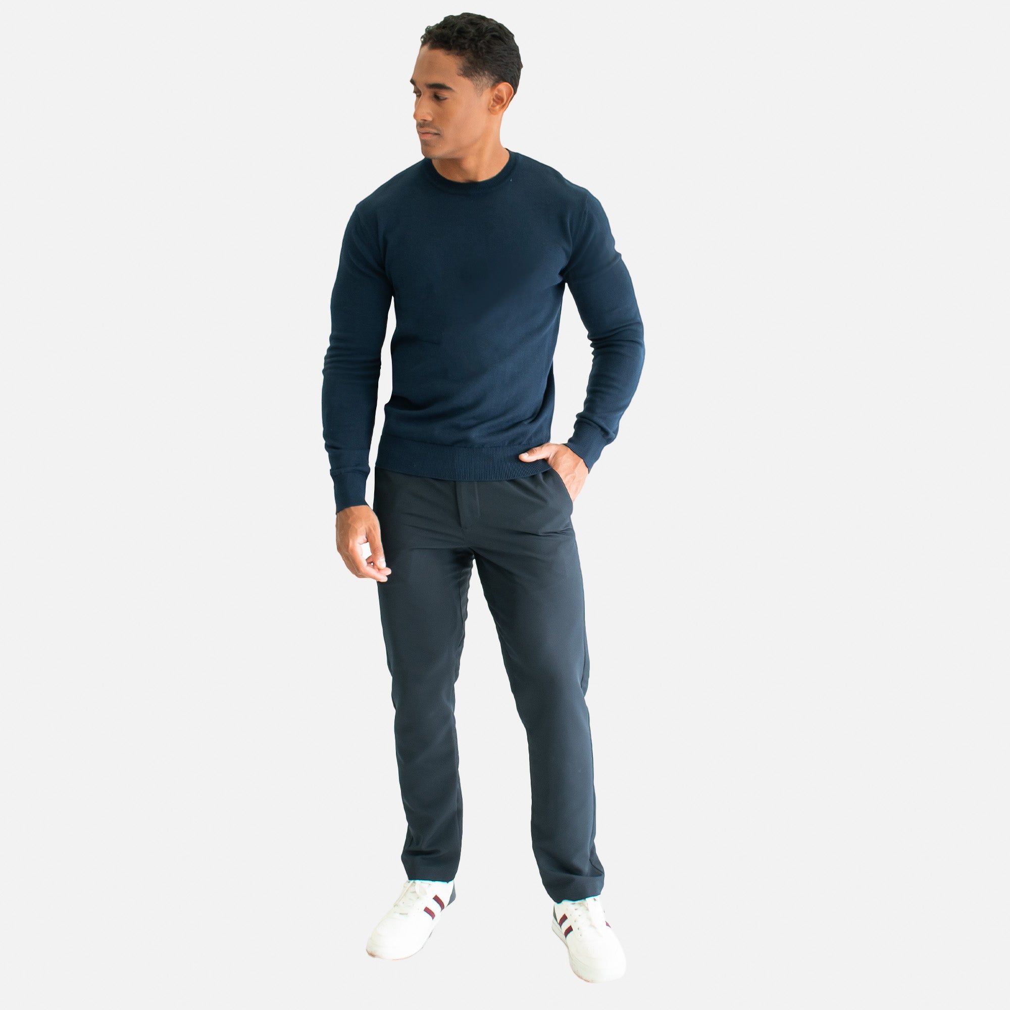 Suéter ligero de cuello redondo y manga larga, corte regular fit, suave al tacto y fresco al usarlo.