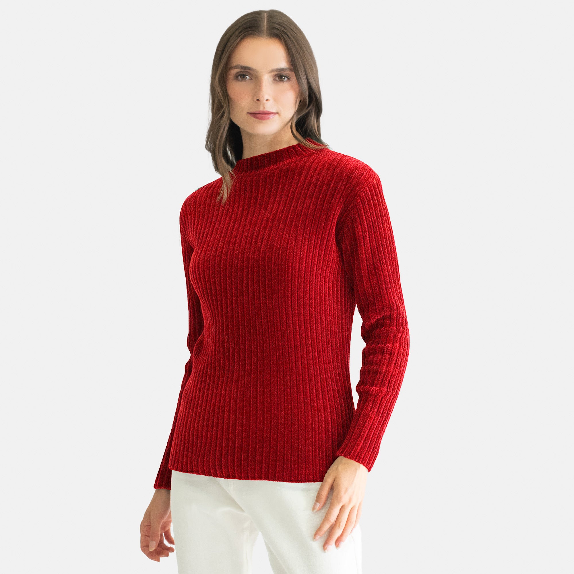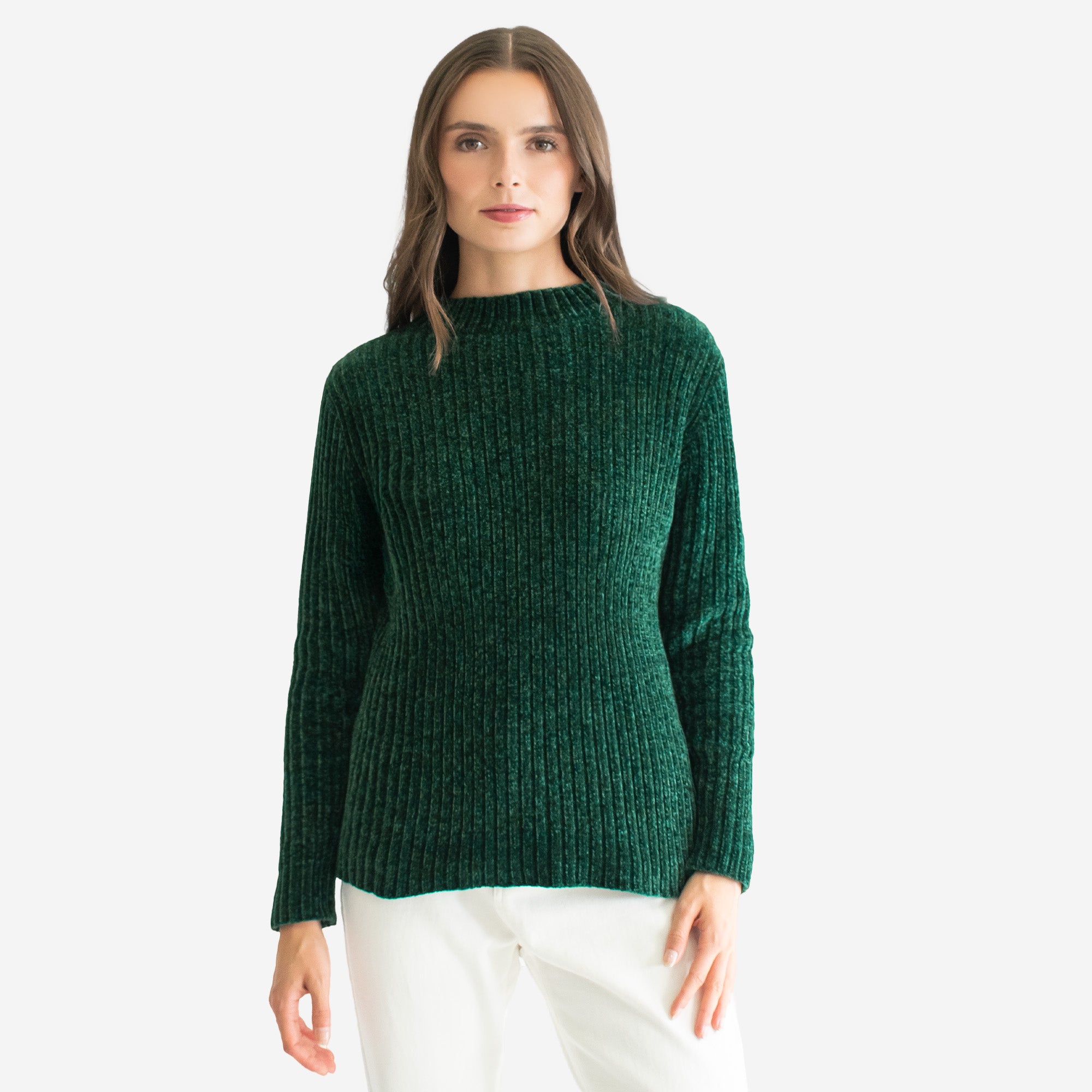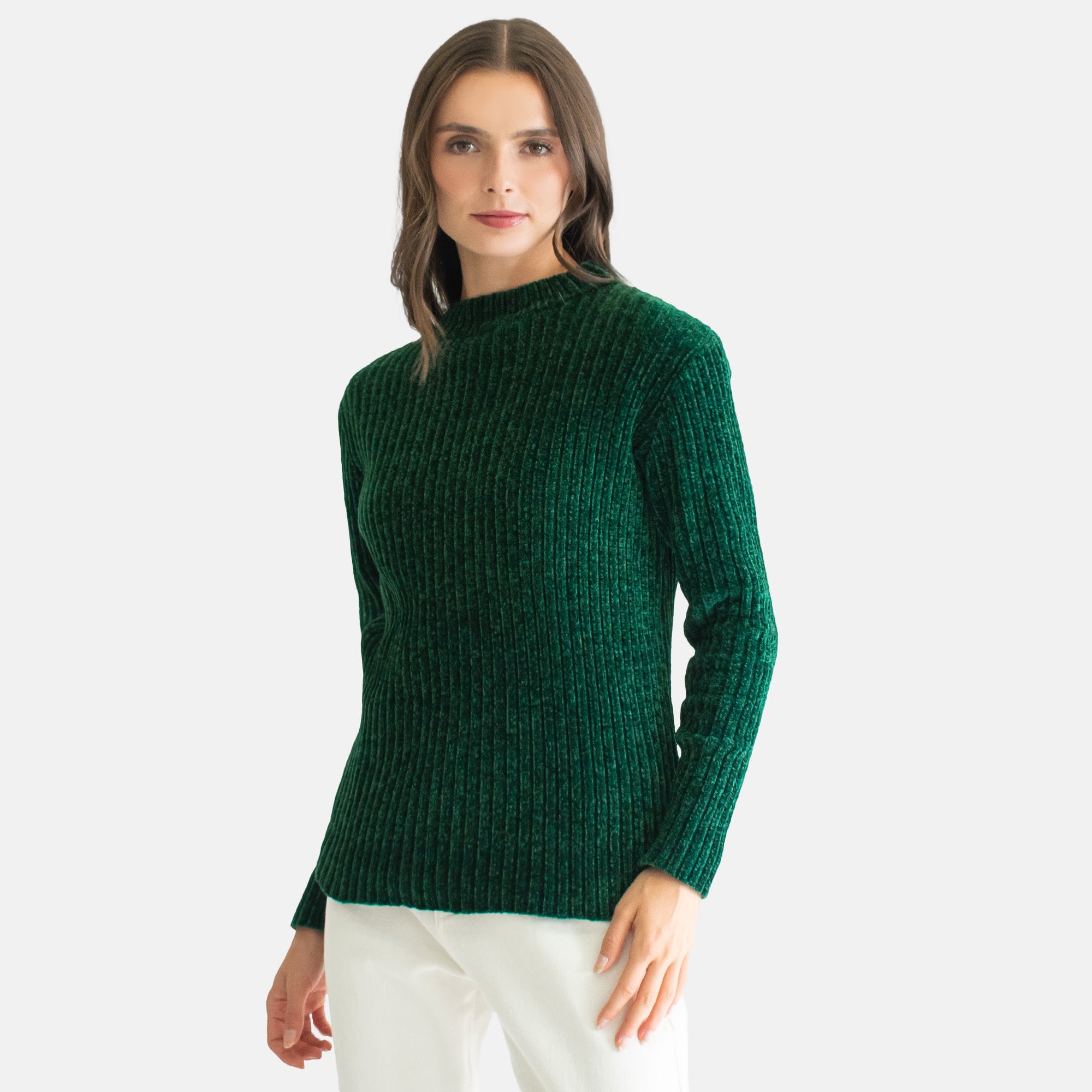 Suéter de manga larga en comfy fit, tejido en textura afelpada tipo chenille. Cuenta con cuello mock redondo que aporta un toque moderno y acogedor. Ideal para un look cómodo y elegante a la vez.