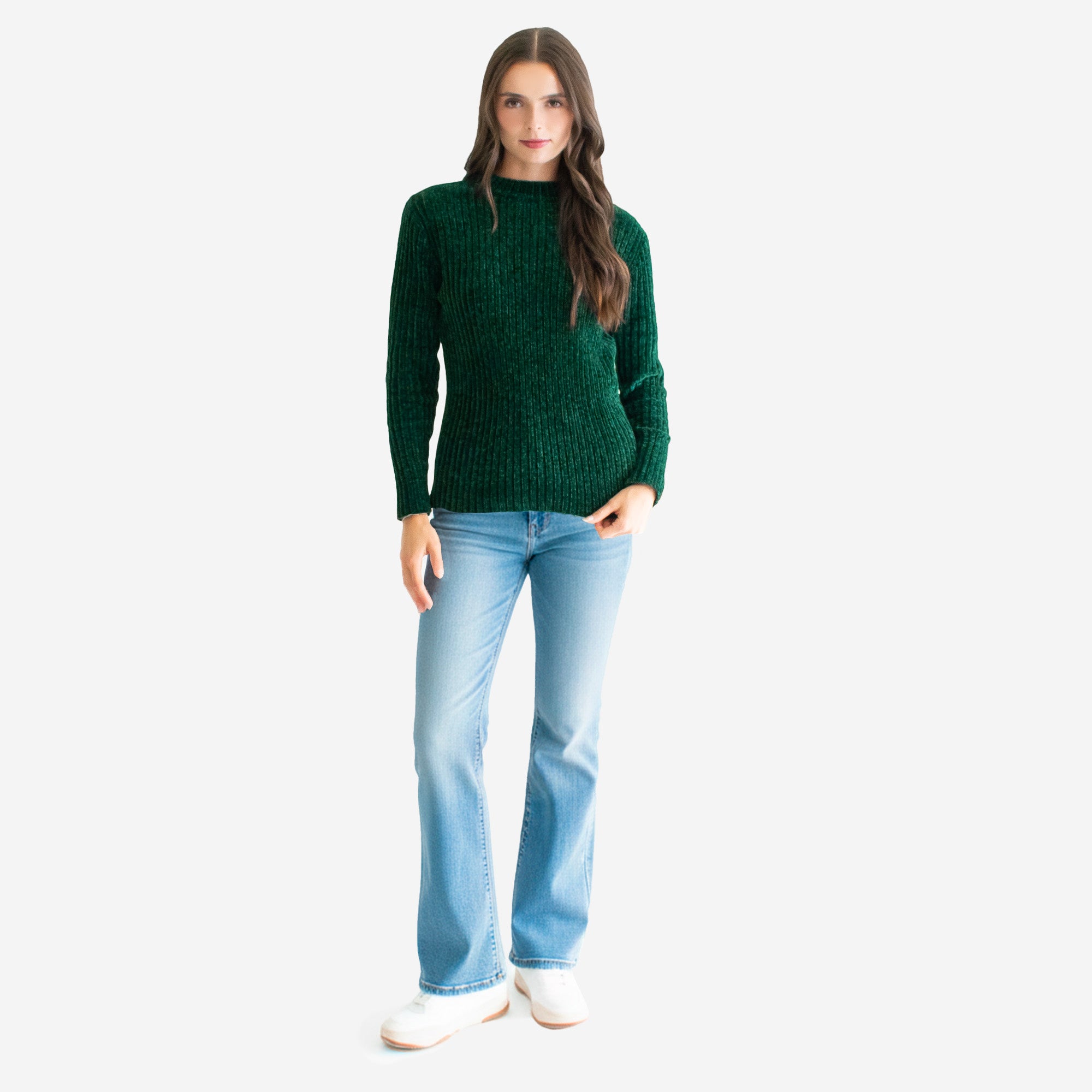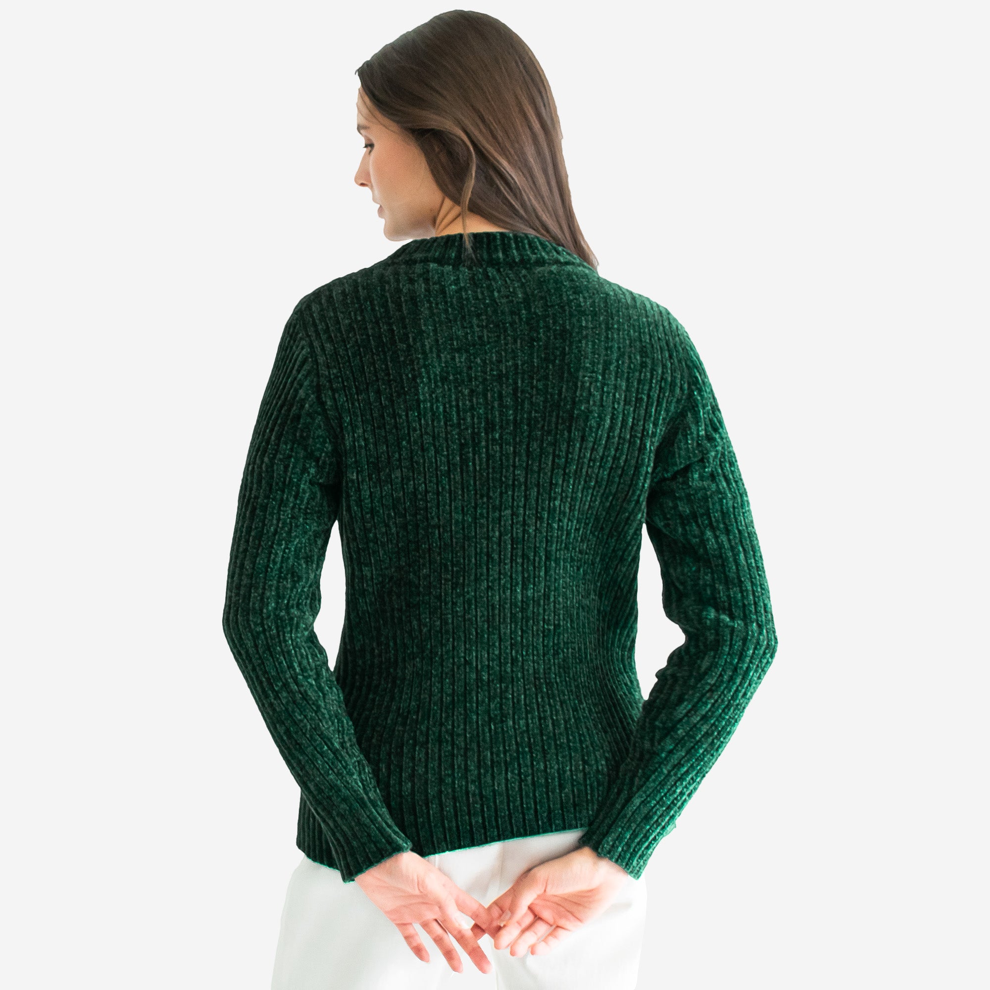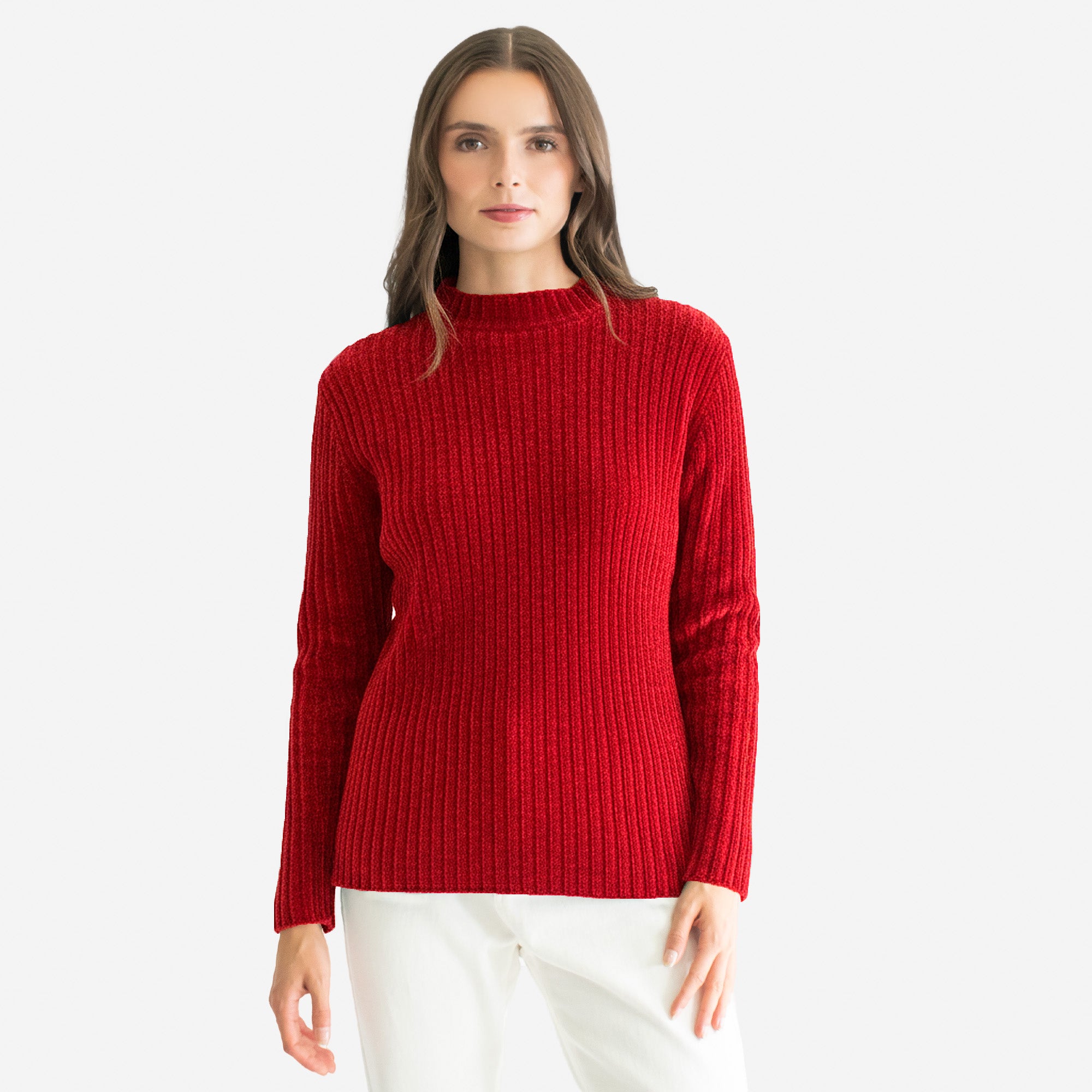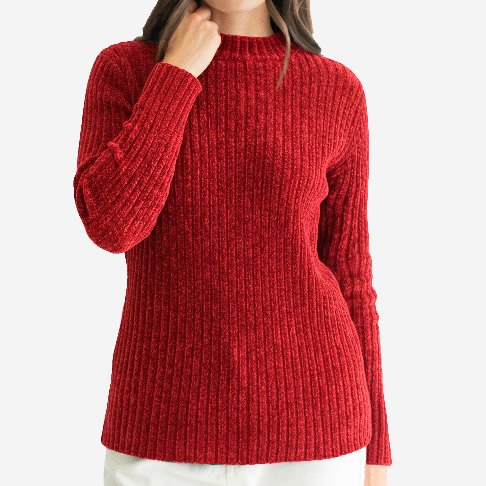 Suéter de manga larga en comfy fit, tejido en textura afelpada tipo chenille. Cuenta con cuello mock redondo que aporta un toque moderno y acogedor. Ideal para un look cómodo y elegante a la vez.